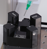 點(diǎn)膠機(jī)上記憶噴嘴頂端的位置后,當(dāng)噴嘴更換和注射器更換中噴嘴頂端發(fā)生位移時(shí),檢測(cè)、補(bǔ)正此位移量,可進(jìn)行與更換前相同點(diǎn)膠的“探針調(diào)節(jié)功能”不僅是在原有的3軸機(jī)上,如今在4軸機(jī)上也已成為可能。如果注射器更換時(shí)噴嘴位置的調(diào)整很費(fèi)時(shí),那么請(qǐng)一定利用該功能。