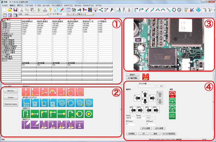 使用專(zhuān)用的系統(tǒng)軟件,“螺絲緊固作業(yè)”、“點(diǎn)膠作業(yè)”的示教都很簡(jiǎn)單。如果使用PC軟件“JR C-PointsⅡ”,可以在DXF文件或Gerber數(shù)據(jù)的基礎(chǔ)上創(chuàng)建示教數(shù)據(jù)。